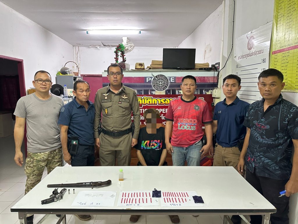 โดยกล่าวหาว่า “จำหน่ายยาเสพติดให้โทษประเภท 1 (ยาบ้า) โดยการมีไว้ในครอบครองเพื่อจำหน่ายโดยฝ่าฝืนต่อกฎหมาย, มียาเสพติดให้โทษประเภท 1 (ไอซ์) ไว้ในครอบครองโดยฝ่าฝืนต่อกฎหมาย, มีอาวุธปืนและเครื่องกระสุนปืนไว้ในครอบครองโดยไม่ได้รับอนุญาต, เสพยาเสพติดให้โทษประเภท ๑ (เมทแอมเฟตามีน) โดยผิดกฎหมาย, ลักลอบเล่นการพนันออนไลน์(สล็อตแมชชีน)พนันเอาทรัพย์สินกันโดยผิดกฎหมาย”