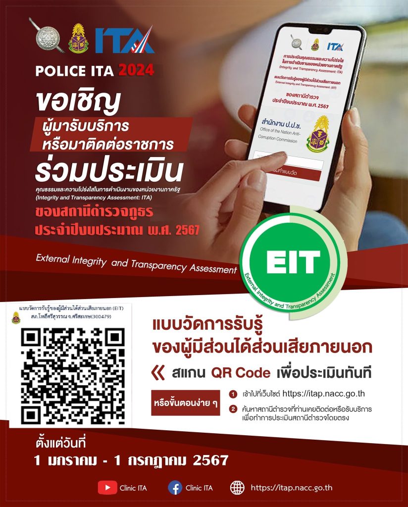 ขอเชิญร่วมเป็นส่วนหนึ่งในการประเมินคุณธรรมและความโปร่งใส ปี พ.ศ. 2567 (EIT)