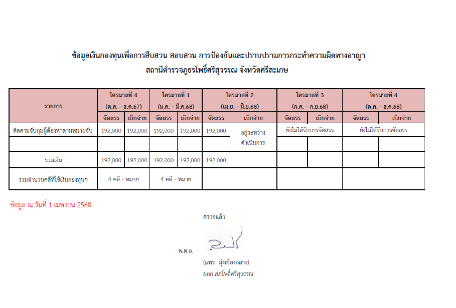 Home » O13 ข้อมูลเงินกองทุนเพื่อการสืบสวนและสอบสวนคดีอาญา